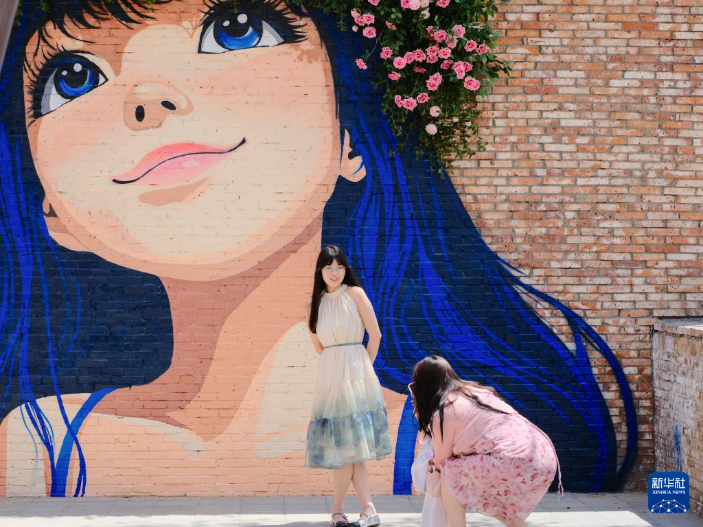 6月22日,游客在“包棉1958”主题文化街区打卡拍照。
