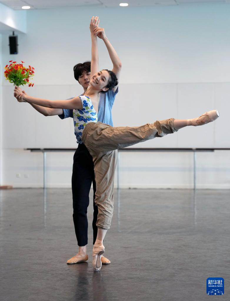 6月25日,在上海国际舞蹈中心排练厅,上芭主要演员郭文槿(前)、许靖昆在排练。