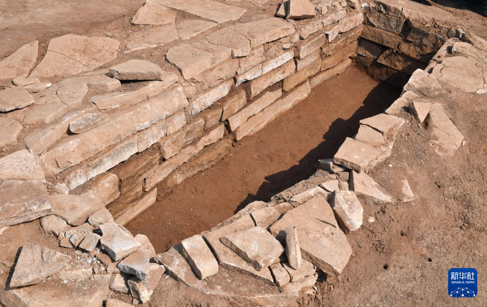 这是6月23日拍摄的东山头遗址一处石墓考古发掘现场。