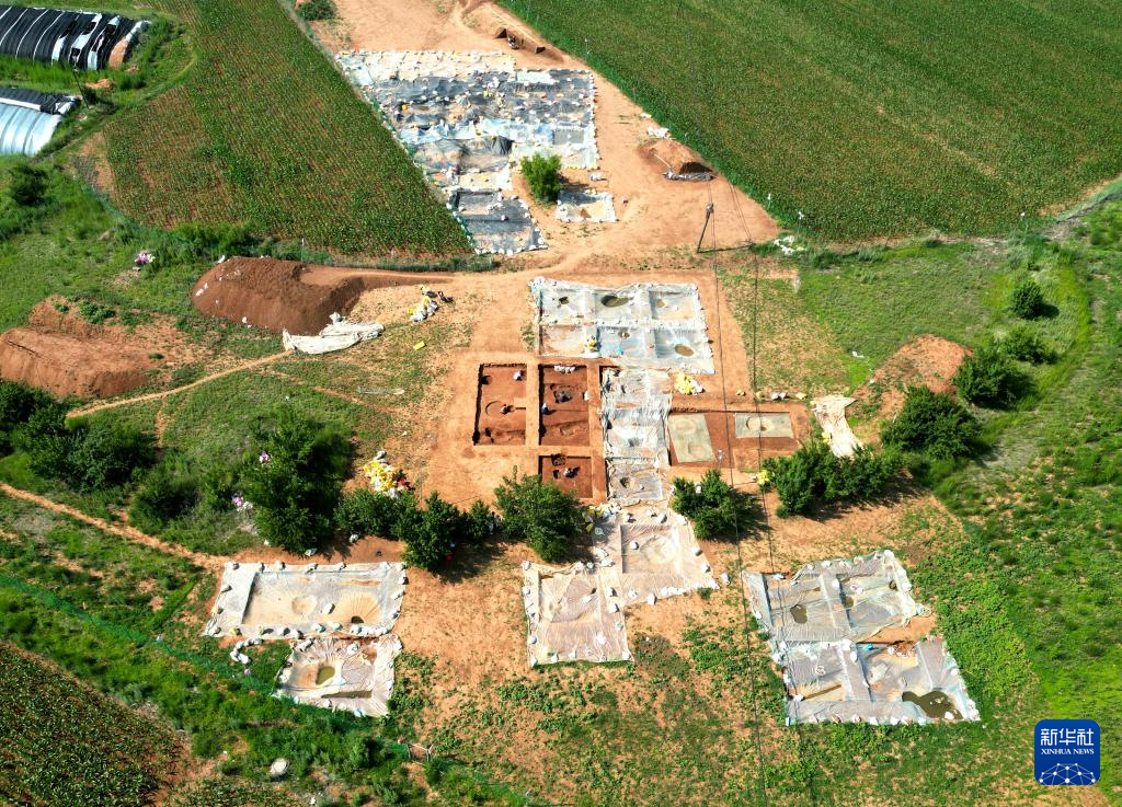 这是6月24日拍摄的东山头遗址考古发掘现场(无人机照片)。