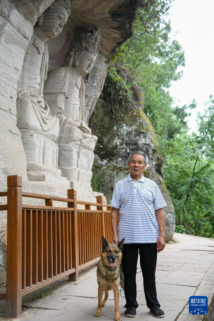 在四川资阳安岳县石羊镇境内的虎头山巅,一位老人经常牵着一条狼狗,在茗山寺外的环形步道转上几圈,仔细检查每一尊摩崖造像是否完好。他,名叫曾祥余,今年76岁。