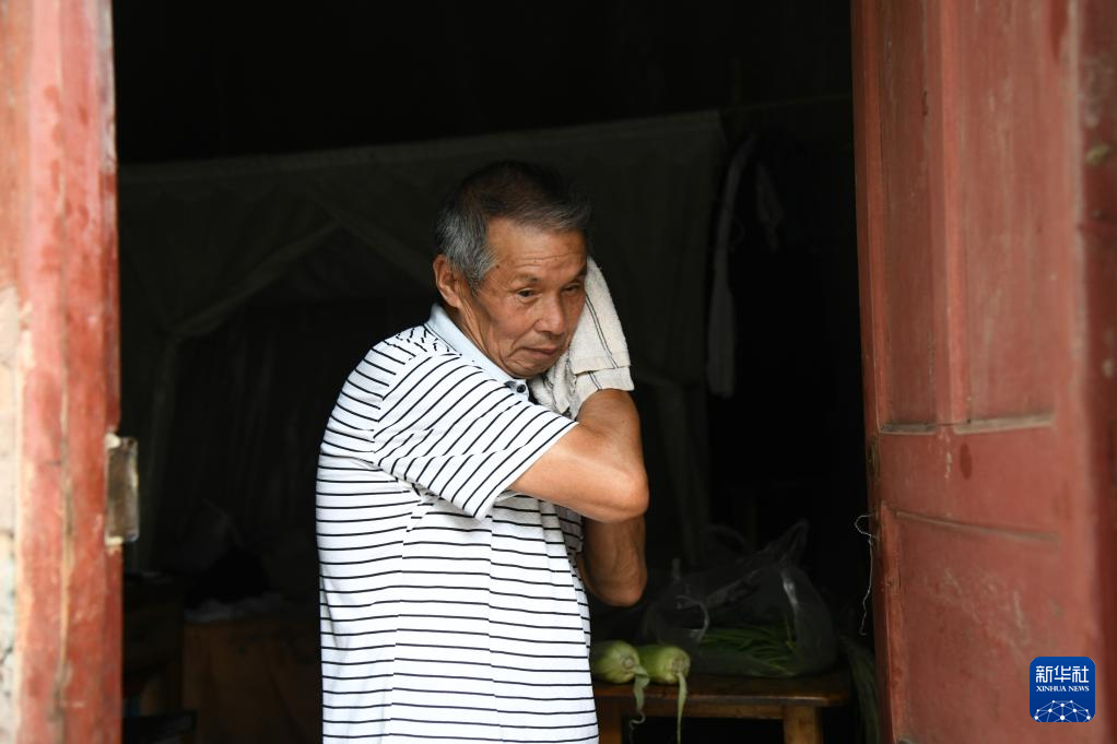 曾祥余在巡查后擦拭汗水(6月14日摄)。