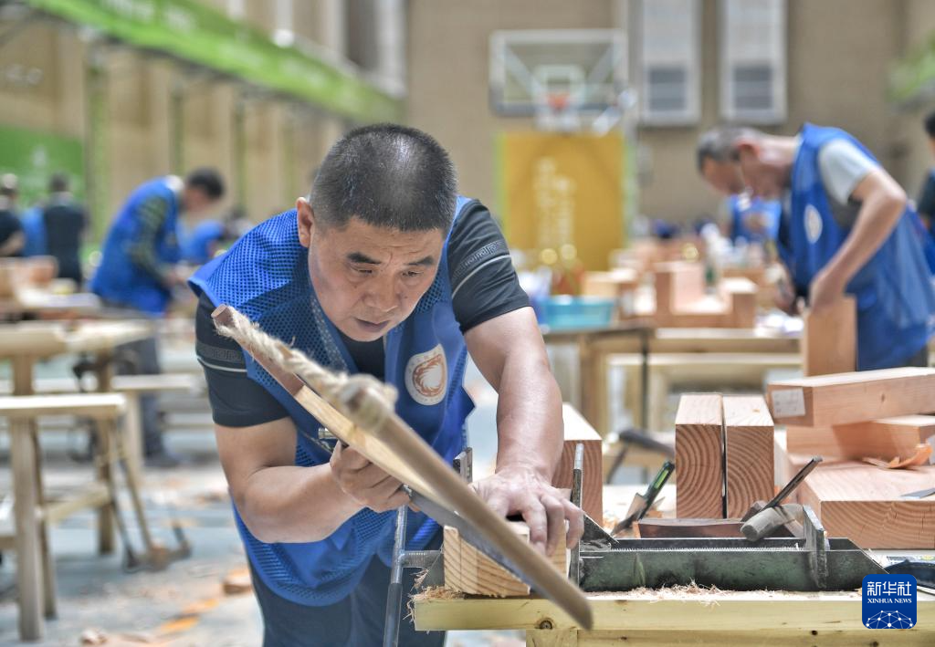 参赛选手在木作文物修复师赛区进行角逐(7月4日摄)。