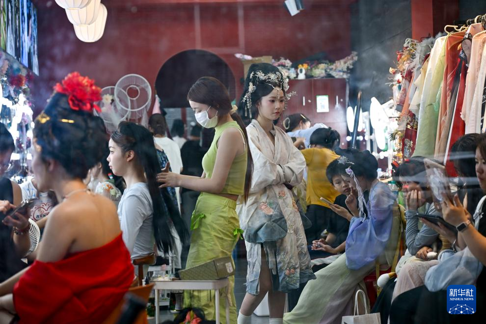 7月7日,傍晚时分,江西南昌滕王阁景区附近的一家旅拍店仍然客流不减。
