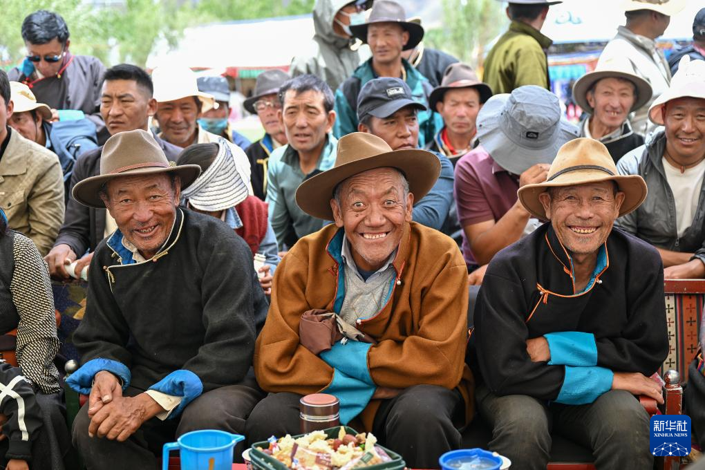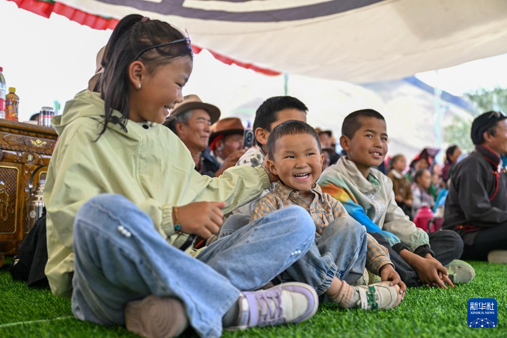 7月16日,群众在南木林县非遗公园内观看藏戏表演。