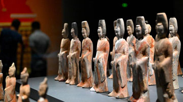 7月21日,人们在国博参观击鼓说唱俑。