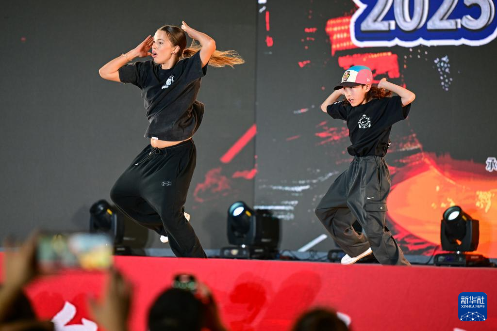 8月3日,中外舞者在2025新疆“丝绸之路”街舞展演活动中进行斗舞展示。