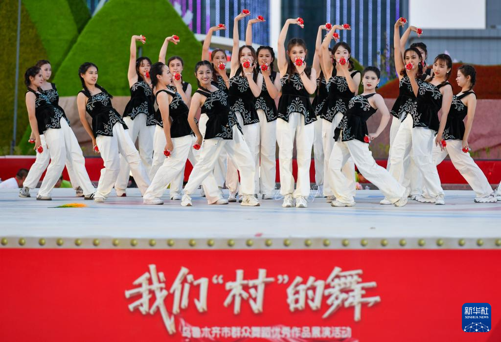 乌鲁木齐市达坂城区舞蹈队在“我们‘村’的舞”乌鲁木齐市群众舞蹈展演活动上表演舞蹈(7月28日摄)。新华社记者 胡虎虎 摄