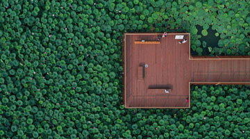 8月9日,游客在广西河池市罗城仫佬族自治县棉花天坑景区内的悬崖书店游玩。