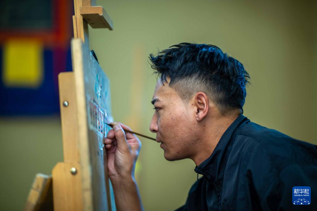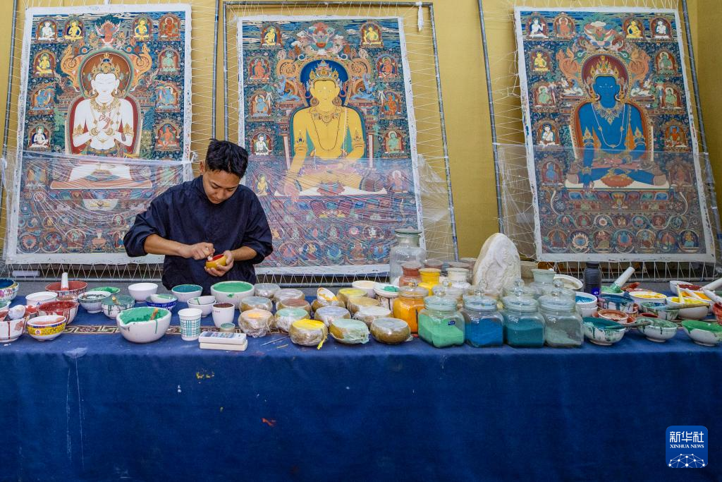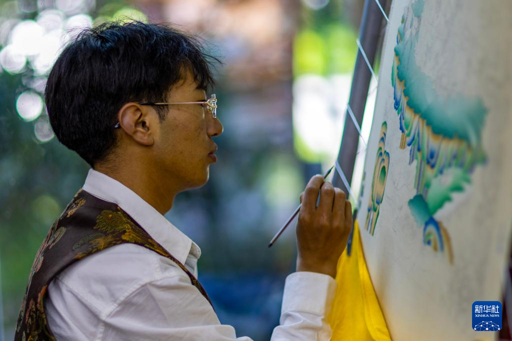 8月6日,一名画师在绘制唐卡。藏族唐卡(齐吾岗派)入选国家级非物质文化遗产代表性项目名录。