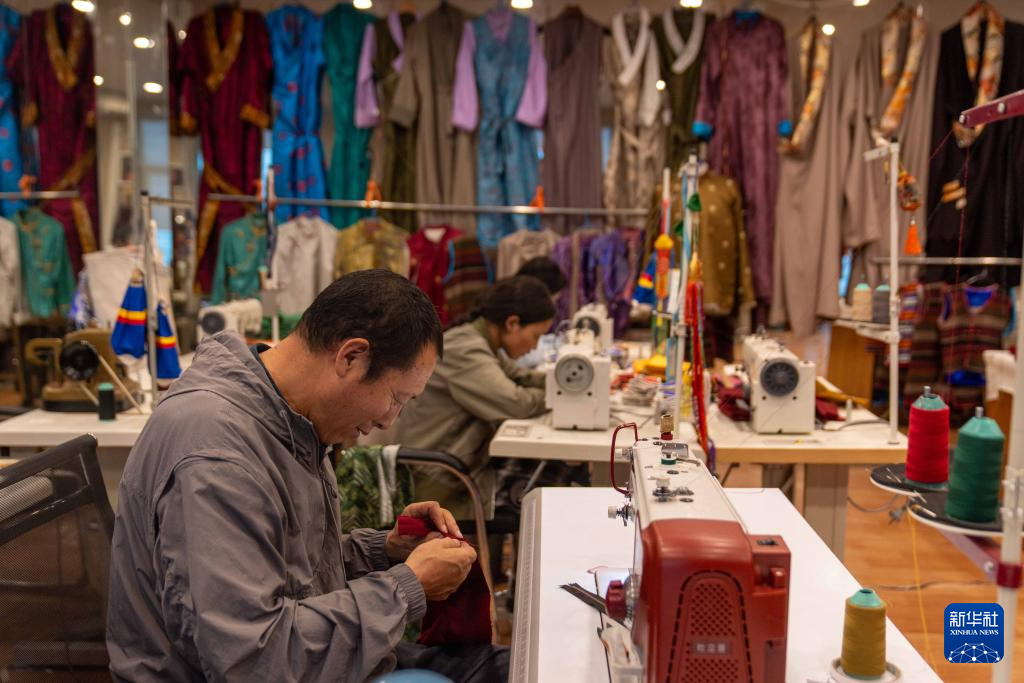 8月6日,服装师在制作拉萨服饰。拉萨服饰入选西藏自治区级非物质文化遗产代表性项目名录。