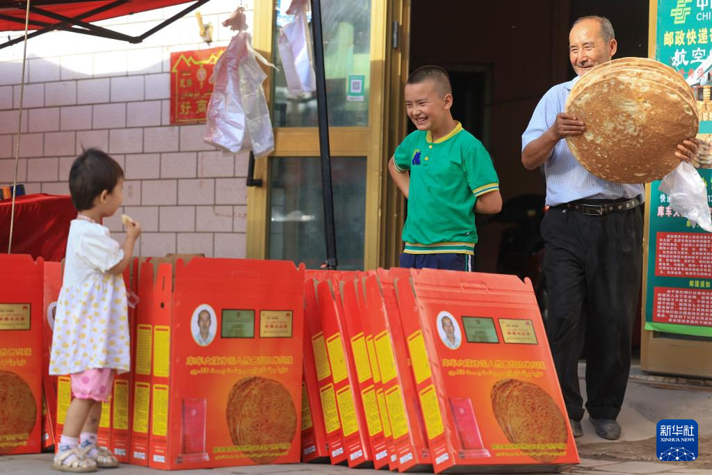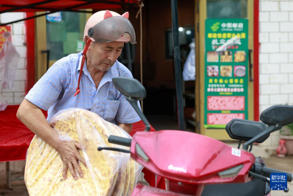 7月21日,在新疆库车市,热西提将馕打包后准备给顾客送货。
