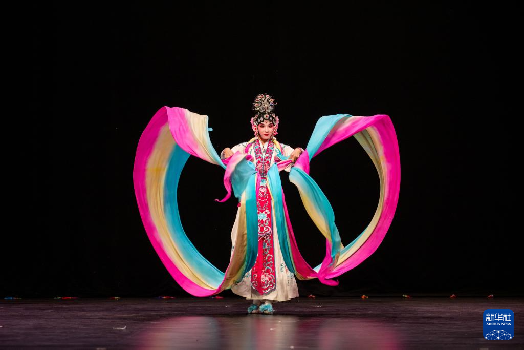 9月25日,在刚果(金)首都金沙萨,演员表演婺剧《天女散花》。