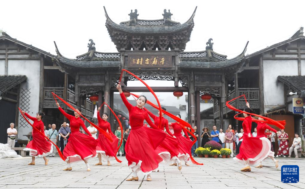 9月27日,演员在江苏省句容市宝华山国家森林公园内的千华古村为游客表演节目。