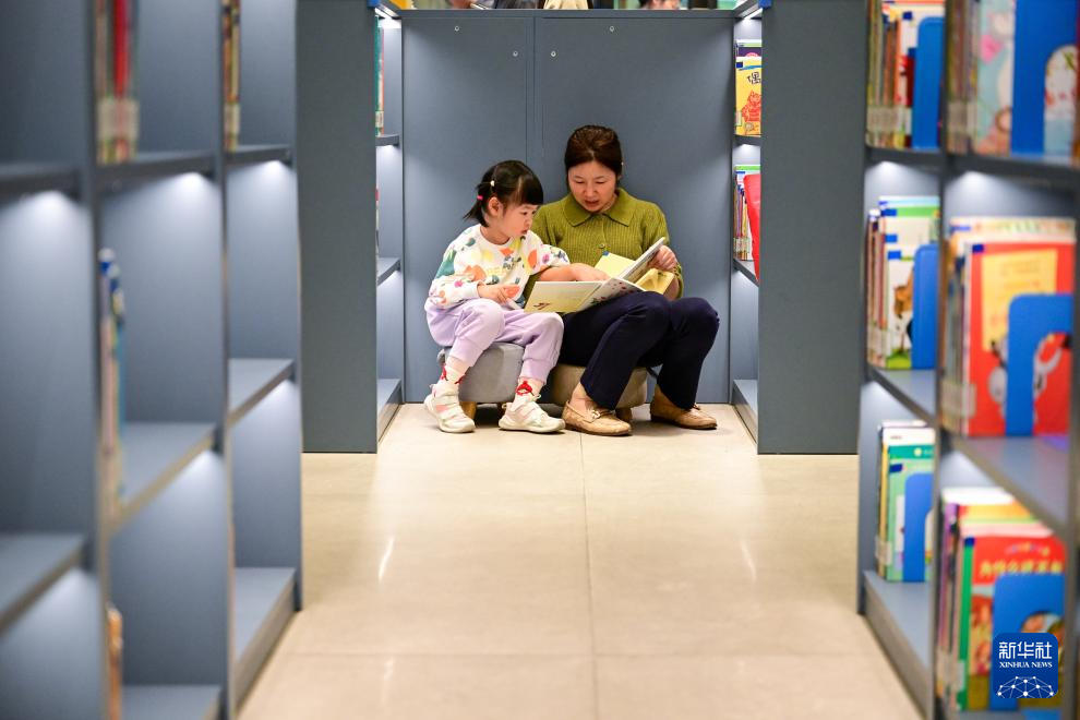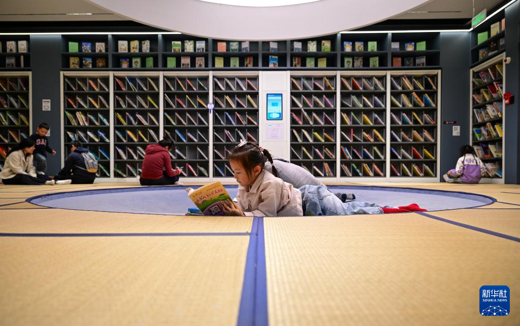 11月9日,小朋友在上海市虹口区和平书院一间榻榻米阅读室内看书。