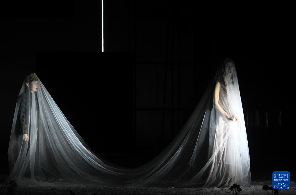11月15日,演员薛飞(左)、凡清在音乐戏剧《小王子》中表演。