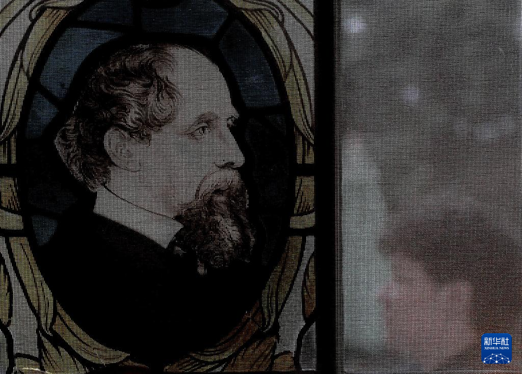 这是11月17日在英国伦敦狄更斯博物馆拍摄的狄更斯雕像。