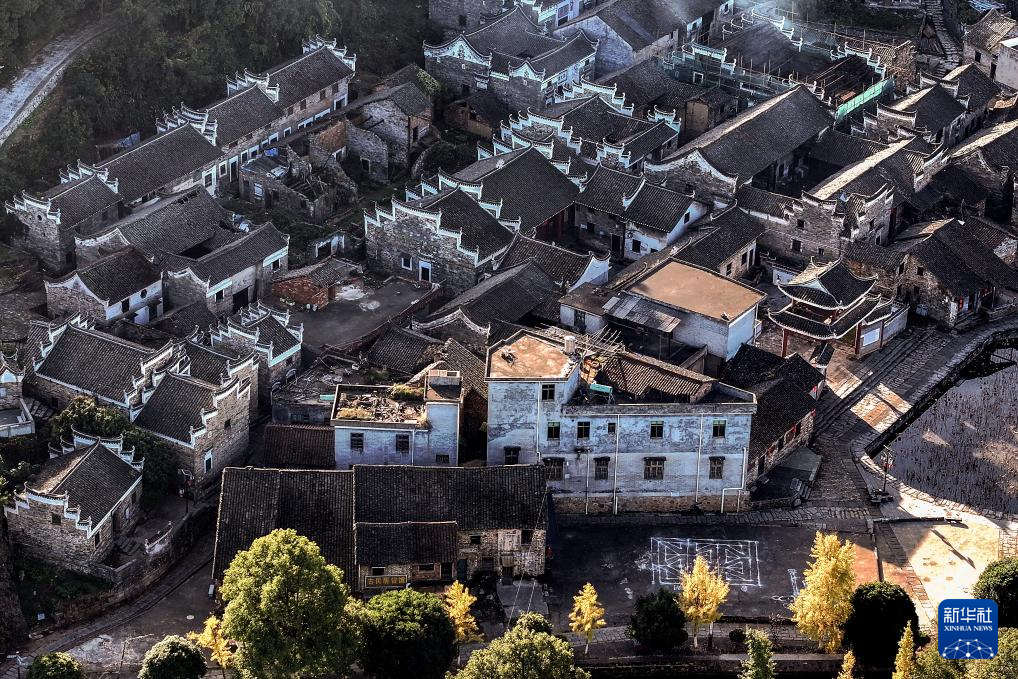 这是11月26日拍摄的郴州永兴县板梁古村局部(无人机照片)。