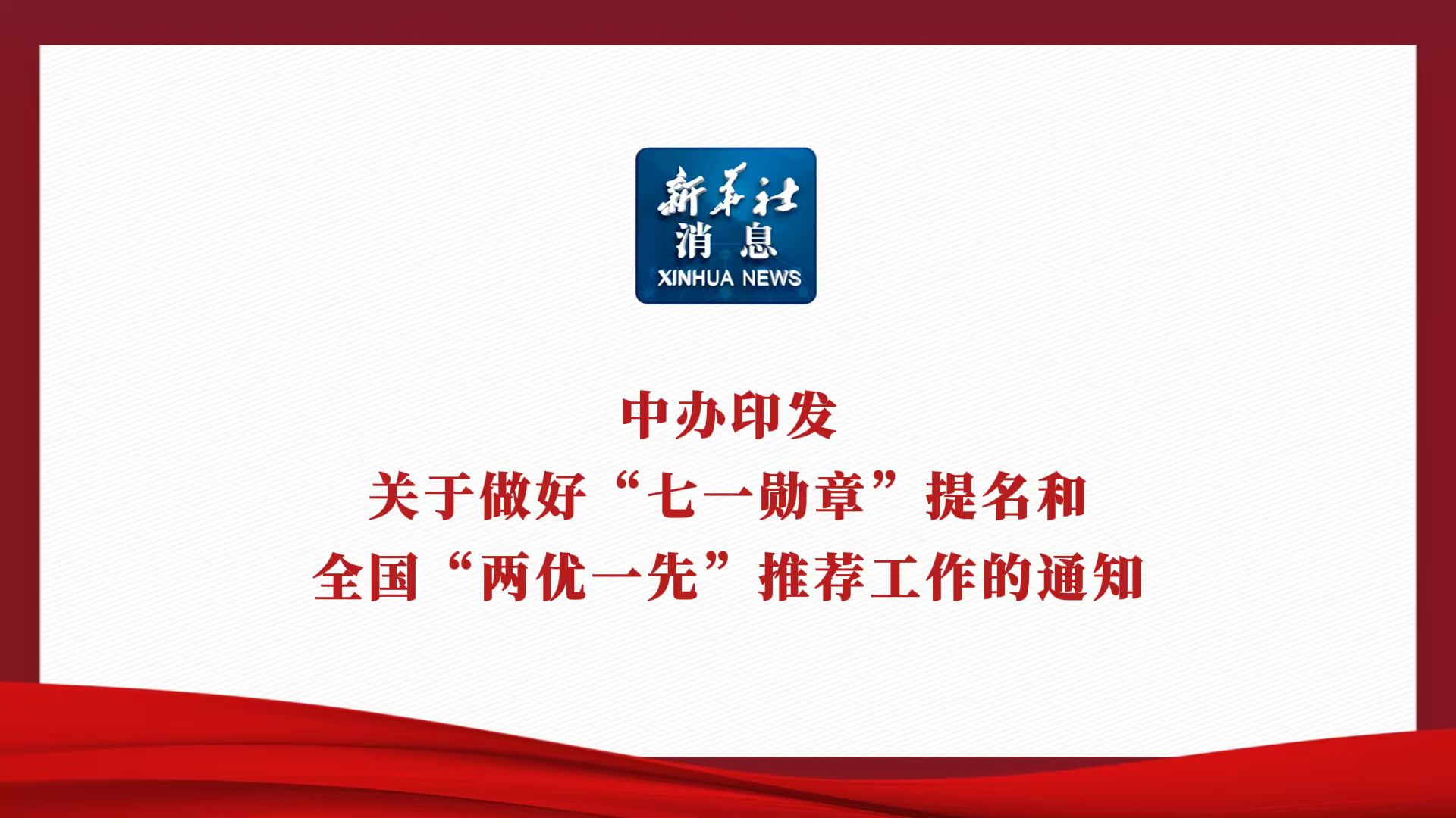 新华社消息丨中办印发关于做好“七一勋章”提名和全国“两优一先”推荐工作的通知