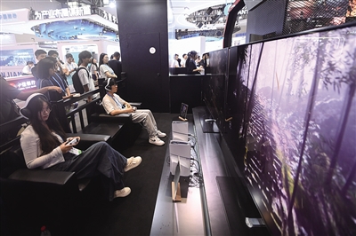 观众体验国内首款3A游戏《黑神话:悟空》。记者 黄宗治 摄
