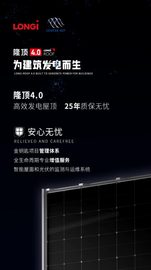 一直以来,建筑都是我国的耗电“大户”。“BIPV作为有效降低我国建筑能耗的方式,大力发展低碳、零碳建筑,对于节能减排、保护环境具有重要的现实意义。”隆基绿能中国政企地区部总裁陈鹏飞介绍说,“隆顶4.0是全球首款搭载BC类电池的BIPV产品,技术的革新也带来产品性能的大幅提升。”