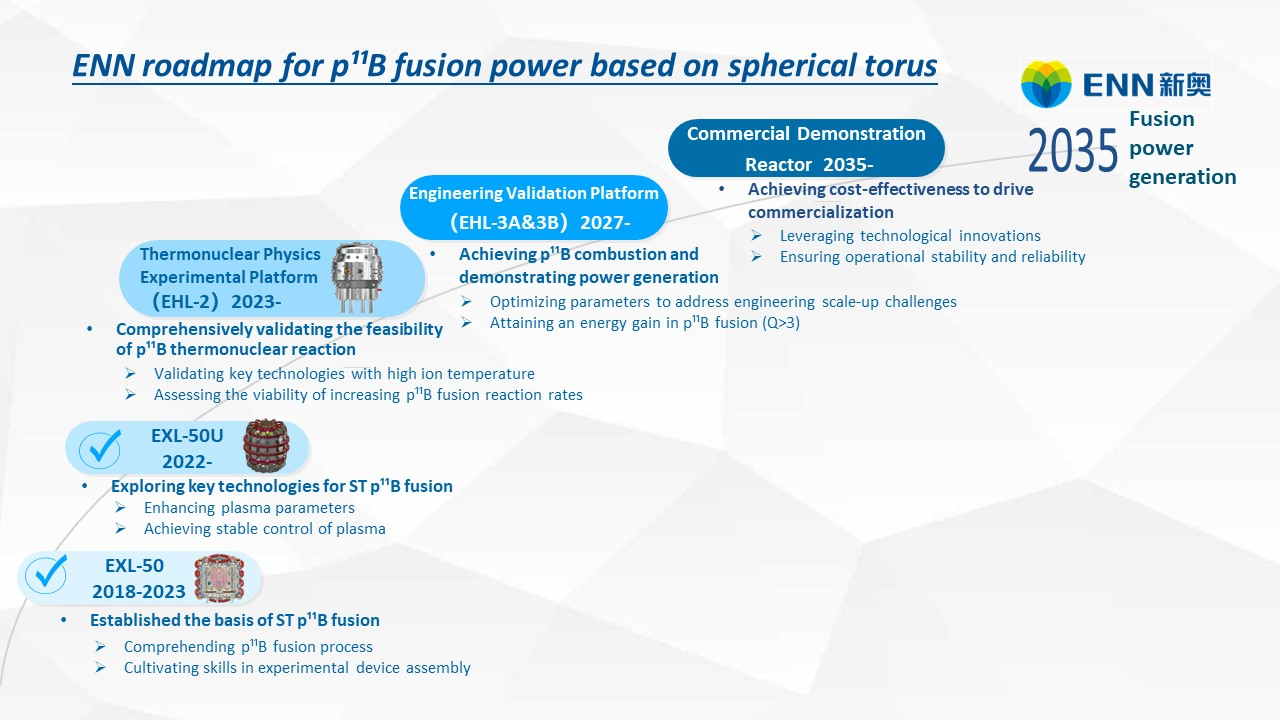 2022年,新奥锚定“无中子、低成本、商业化”的聚变研发目标,确定了球形环氢硼聚变技术路线,并启动了物理参数全球领先的“和龙-2”实验装置的设计,旨在通过该装置解决球形环氢硼聚变的科学问题和关键技术,主要目标包括:验证球形环氢硼热核聚变反应率,建立实验定标律,为实验堆设计提供重要依据。