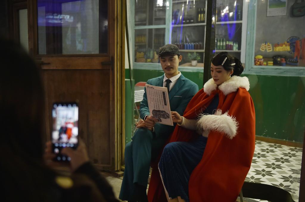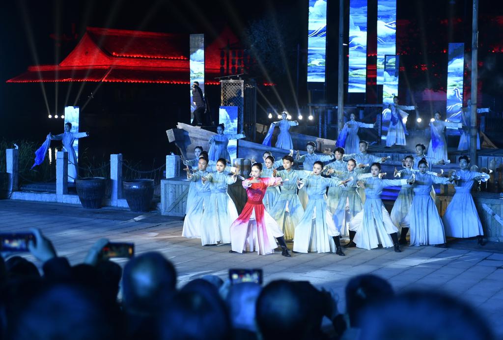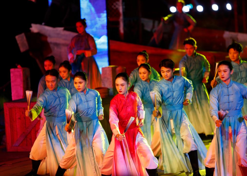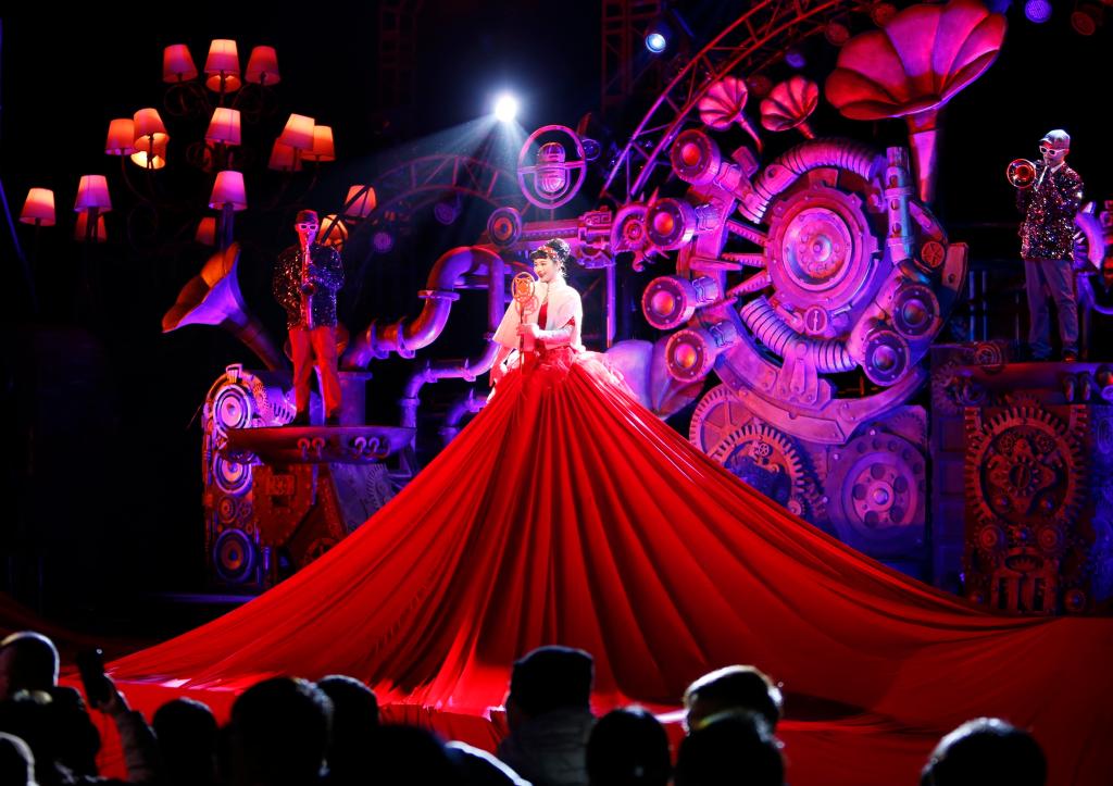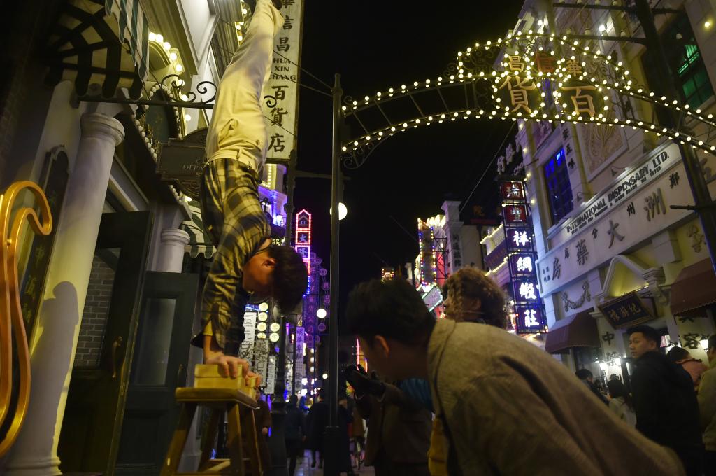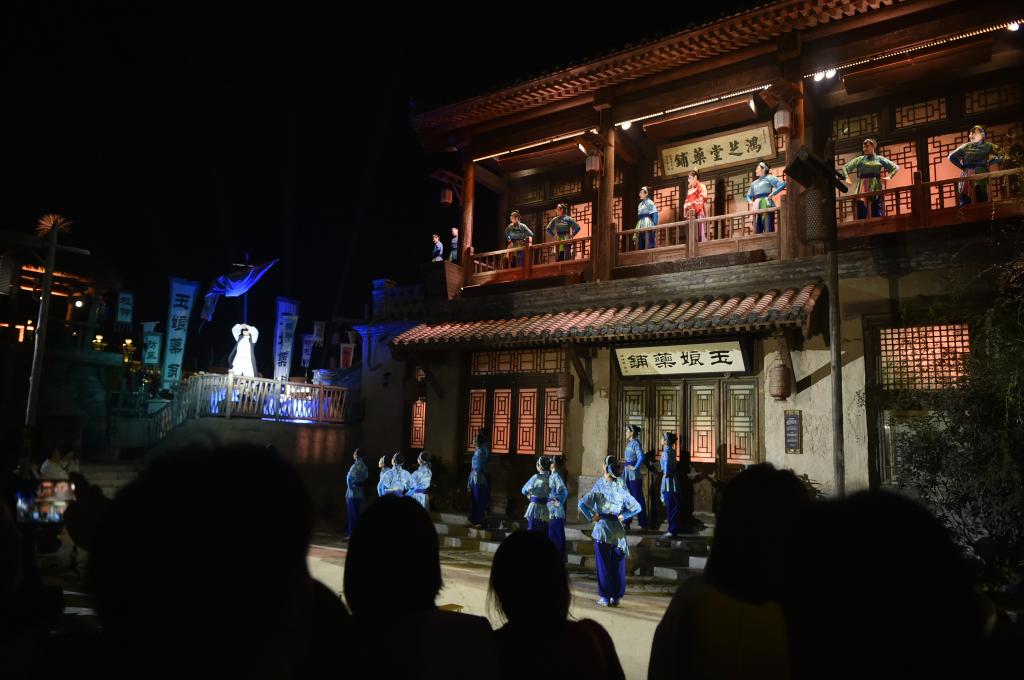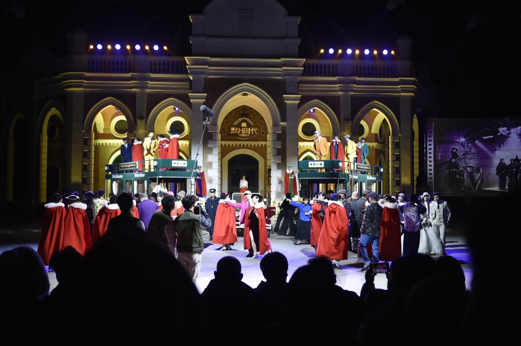 11月16日晚,演员在建业电影小镇内为观众表演。