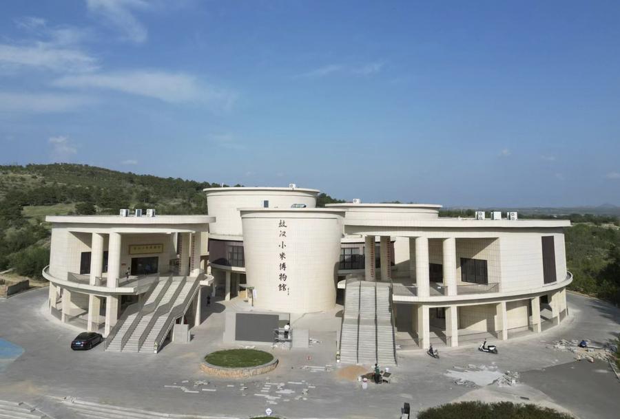 敖汉旗小米博物馆始建于2018年,其建筑造型如一块玉玦中间环绕着三个陶罐,设计灵感来自当地兴隆沟遗址出土的玉珏和桶形陶罐。博物馆一建成,就成为热门地标。记者近日走访这座小米博物馆,探寻小米的8000年“传奇”。