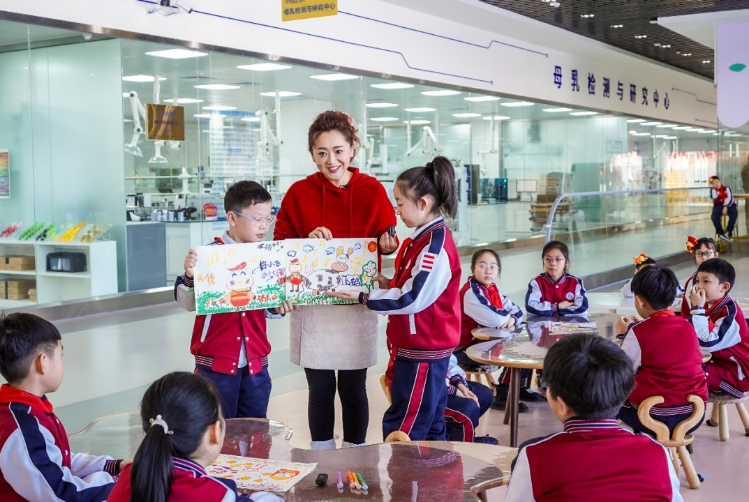 飞鹤为妈妈团和小朋友们准备了丰富的研学体验内容,由专业讲解员全程陪伴小朋友们游历了飞鹤共生未来馆、创新研发中心、透明奶粉观光工厂等。