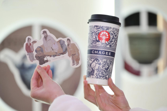 同时,霸王茶姬还在全国门店上线6张“茶文化”文物卡片,以不同时期的文物象征不同的制茶技艺。例如,“越窑青釉葵口碗”取“煎茶浮珠”之意,象征着煎茶之法盛行的大唐茶韵;“建窑黑釉兔毫盏”以“点茶成画”见证点茶法的风雅之美;霸王茶姬的茶马古道杯,则以“原叶现萃”为核心,展现中国茶的最新形态。通过6张茶文化文物卡片的组合,共同演绎出中国人制茶及饮茶历史的演变脉络。
