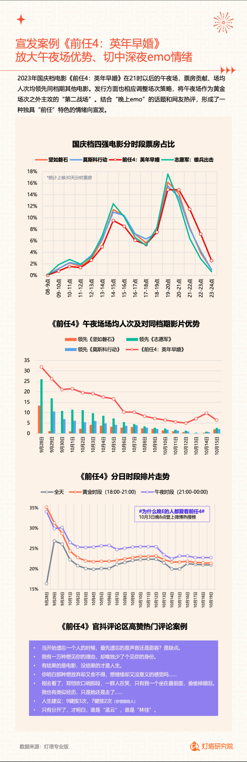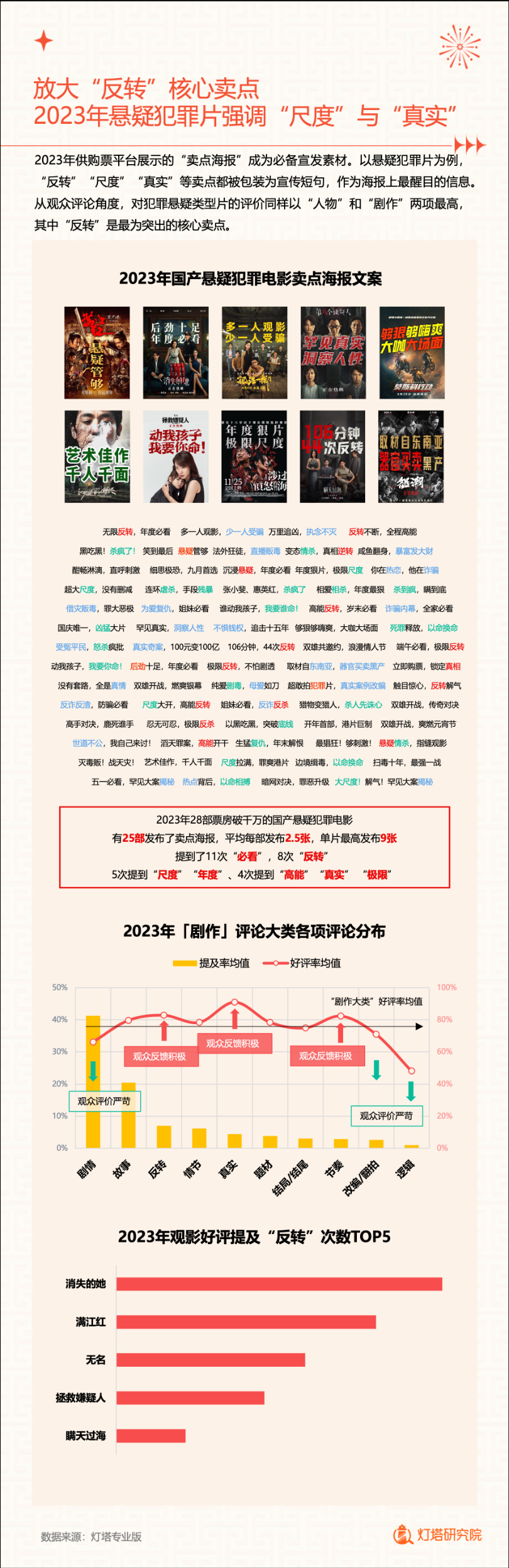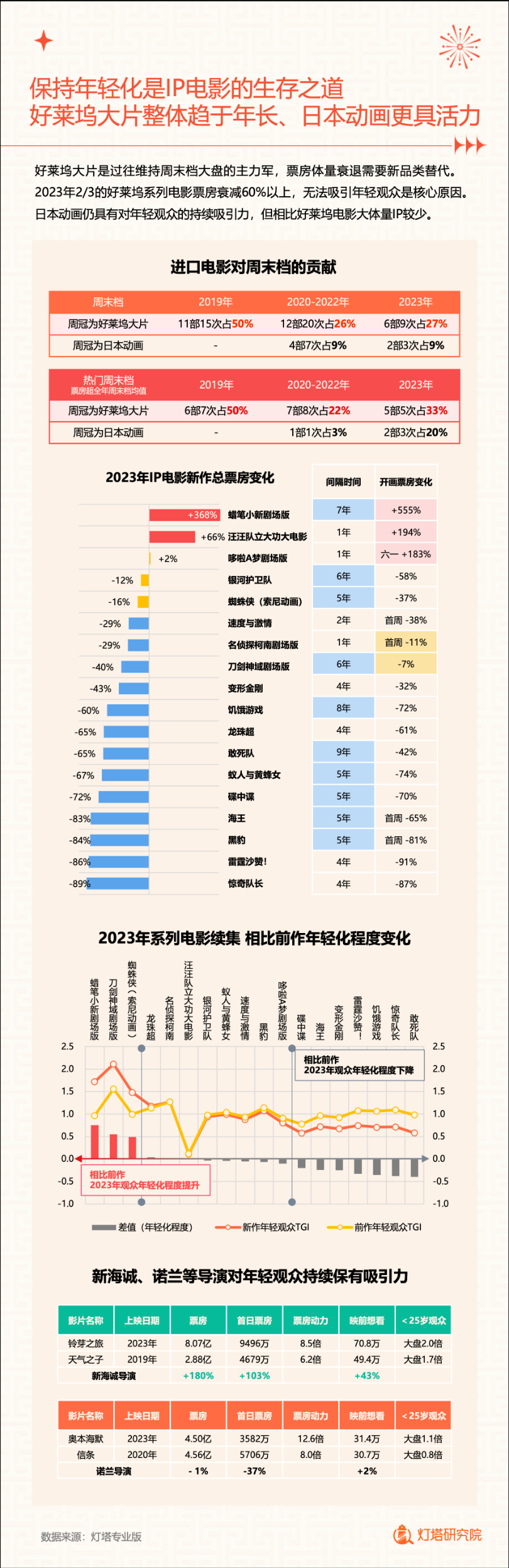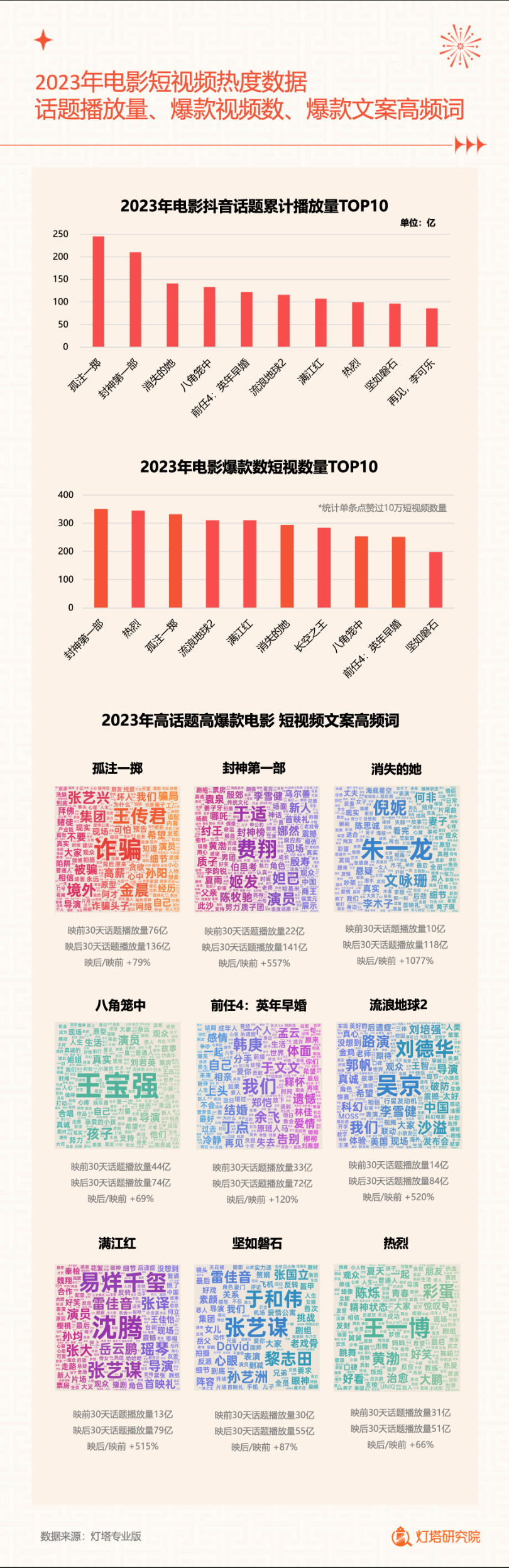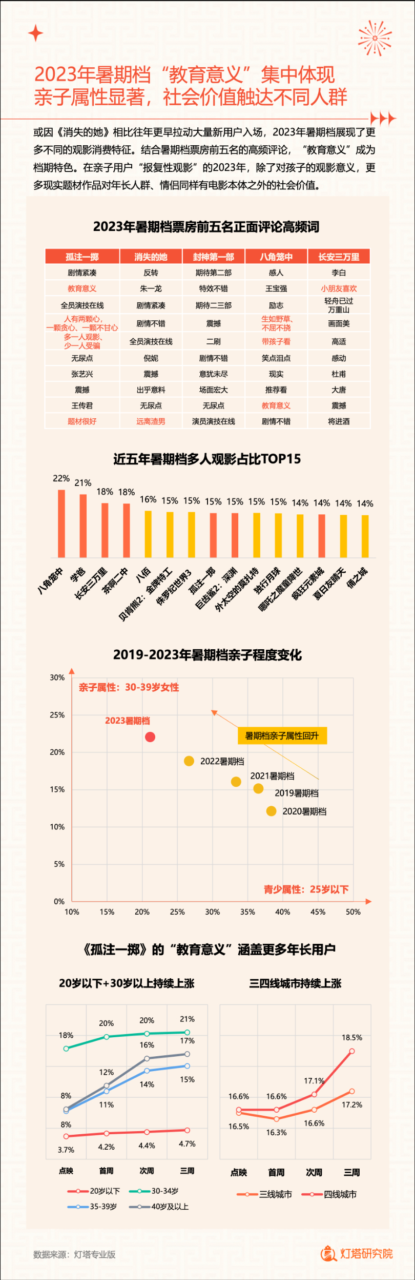 新华网北京1月2日电(记者闫雨昕)2024年1月1日,灯塔研究院联合新华网发布《2023中国电影市场年度盘点报告》(以下简称“报告”),从市场核心数据、观影消费习惯、热门档期与周末档、宣发新风向、用户画像等方面进行分析。