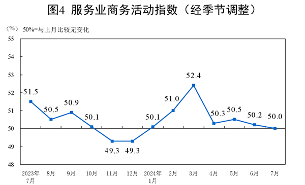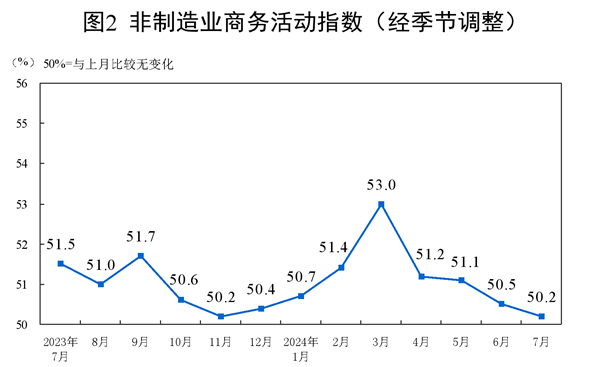 7月份,非制造业商务活动指数为50.2%,比上月下降0.3个百分点,仍高于临界点。