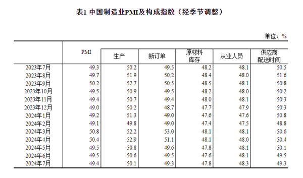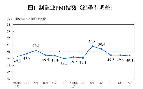 7月份,制造业采购经理指数(PMI)为49.4%,比上月略降0.1个百分点,制造业景气度基本稳定。