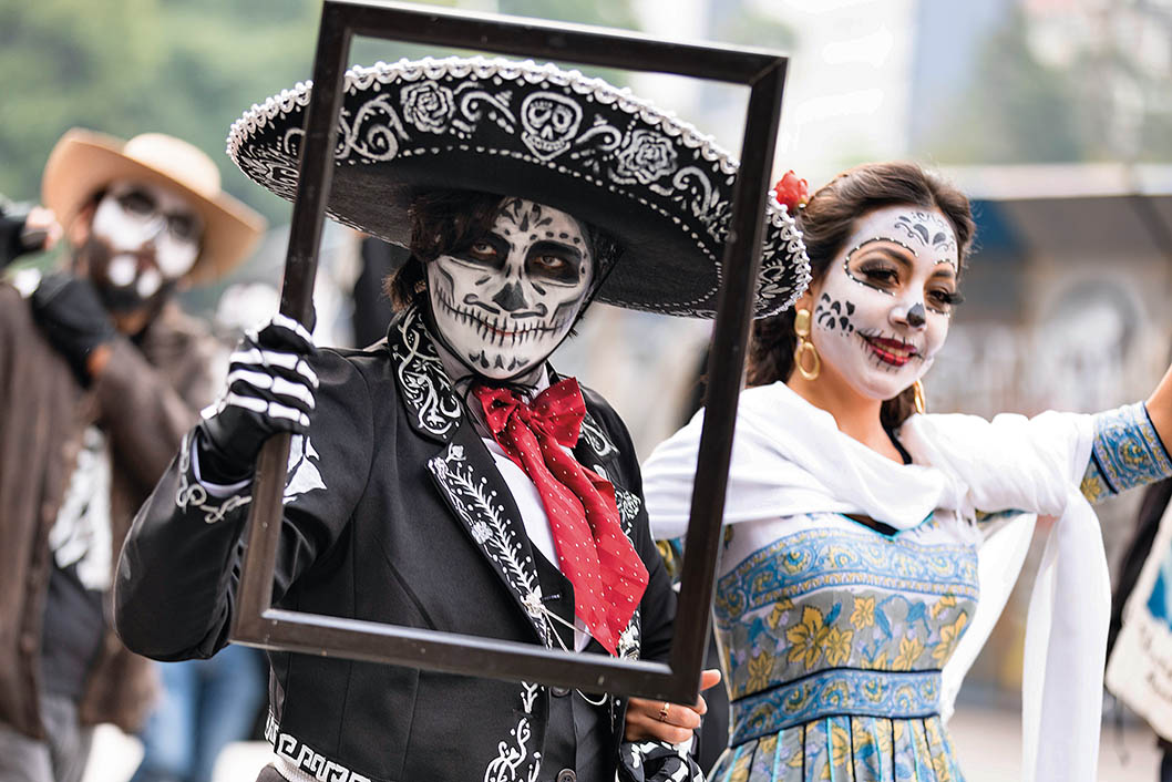 在亡灵节诸多庆祝活动中,最盛大的是每年11月在首都墨西哥城改革大道举行的亡灵节大游行。受2015年好莱坞大片《007:幽灵党》启发,墨西哥政府2016年决定举办大规模游行庆祝亡灵节。活动期间,路边除了盛放的万寿菊,更是被化“卡特里娜妆”的小铺子挤满。