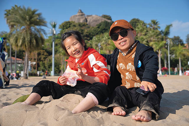 黄如方珍藏着一张照片:在厦门海边,他和患有脊髓性肌萎缩症的8岁小女孩刘诗瑶一起把脚埋进柔软的沙滩,感受阳光的热情和海风的轻拂。