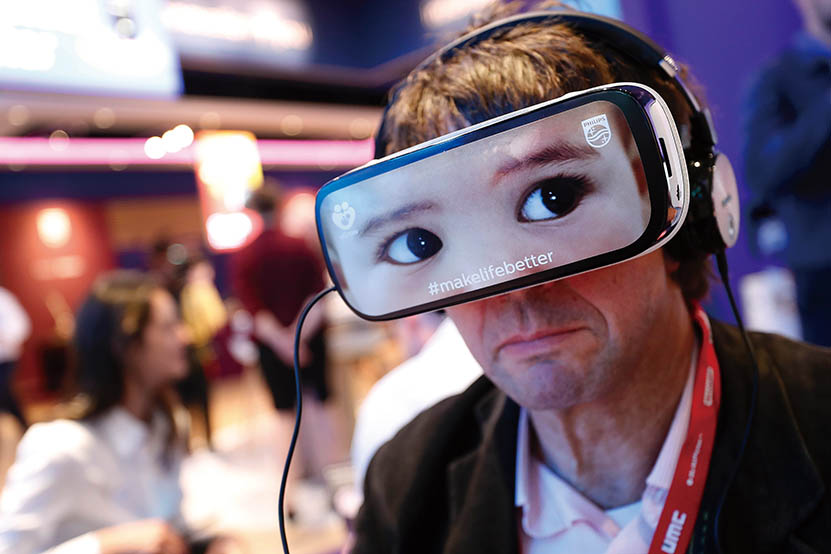 2017年8月31日,在德国柏林举办的国际消费电子预展上,参观者在飞利浦公司展台体验虚拟现实护目镜设备