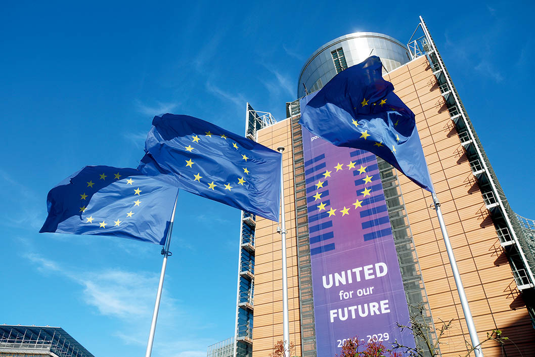 这是4月2日在比利时布鲁塞尔欧盟总部外拍摄的欧盟旗帜