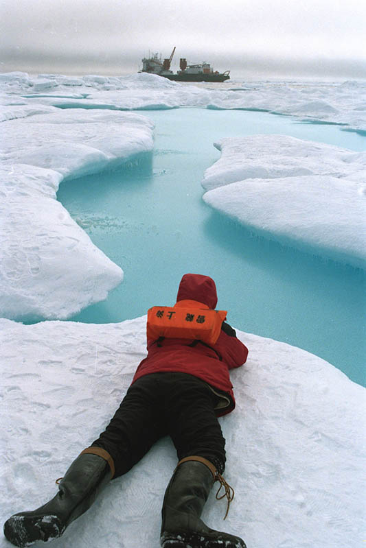 这一片皑皑的冰洋是从来没有人涉足的处女地。中国考察队选择这里,正因为这是国际北极考察的空白区域。也许是在国内看南极的报道太多,也许是北极的确离我们太遥远,在我的脑海中,北极和南极一样,是一片有皑皑冰雪的雪原。然而,当我走进北极,脑海中“雪原”的概念就已经被北冰洋的海水冲刷得干干净净。