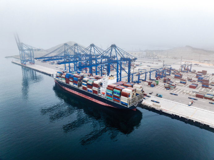 5月16日,一艘货轮停靠在秘鲁钱凯港(无人机照片)