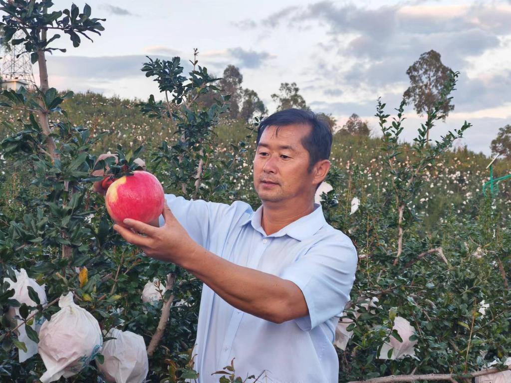 红色的石榴、青红相间的辣椒、金黄的水稻
