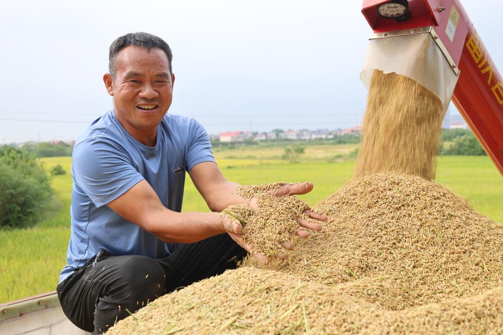 湖南省汨罗市汨罗镇瞭家山社区的种粮大户何忠祥喜上眉梢
