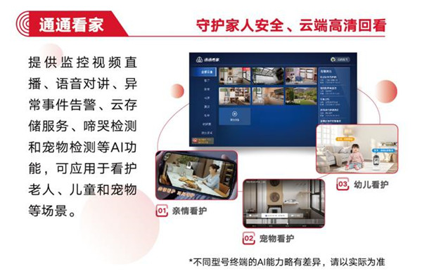 智家通通并不是一款单独的终端设备,它能与多款智能终端协同协作,构建起一个面向未来的家庭AI生态系统。用户只需要说“你好,通通”,智家通通就可以提供百科知识、影视搜索、业务咨询、家庭安防等对话,真正实现“解放双手”的智慧生活新体验,即使是老人、小孩也能轻松驾驭。