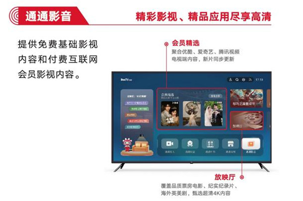 通通影音让用户不再为电视模糊卡顿而烦恼,甄选超清4K内容,配备5W全频扬声器,让视觉与听觉同步焕新,为用户打造真正意义上的沉浸式家庭观影体验。
