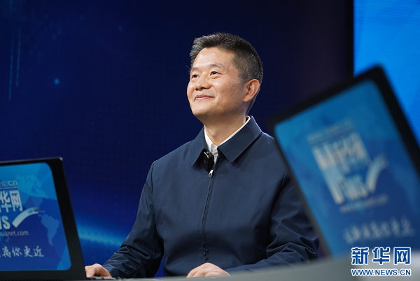 重庆市委社会工作部副部长、市信访办主任钱永培做客新华网访谈。新华网 彭浩然 摄