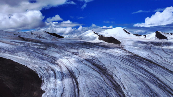 这是2024年7月25日拍摄的长江源区冬克玛底冰川(无人机照片)。新华社记者 陈杰 摄