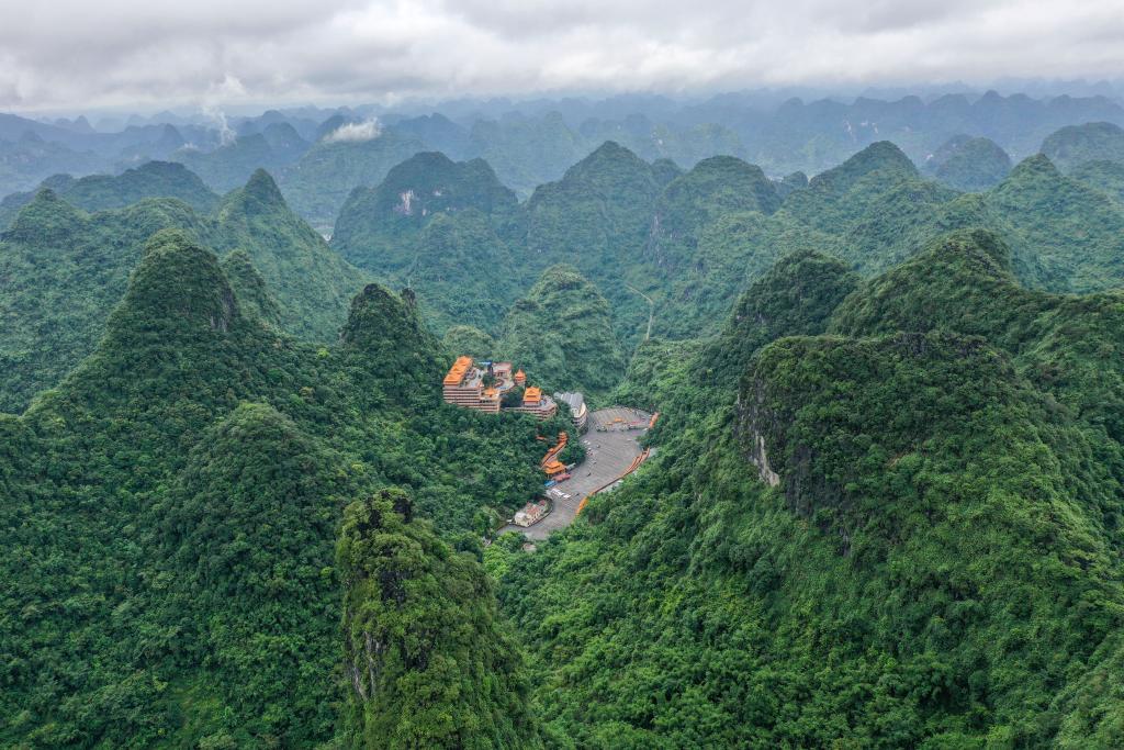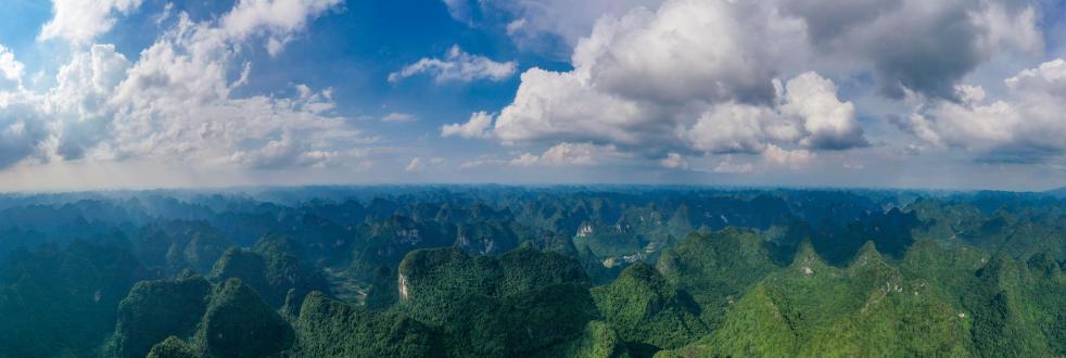 2024年8月9日拍摄的广西弄拉自然保护区及周边群山(无人机全景照片)。