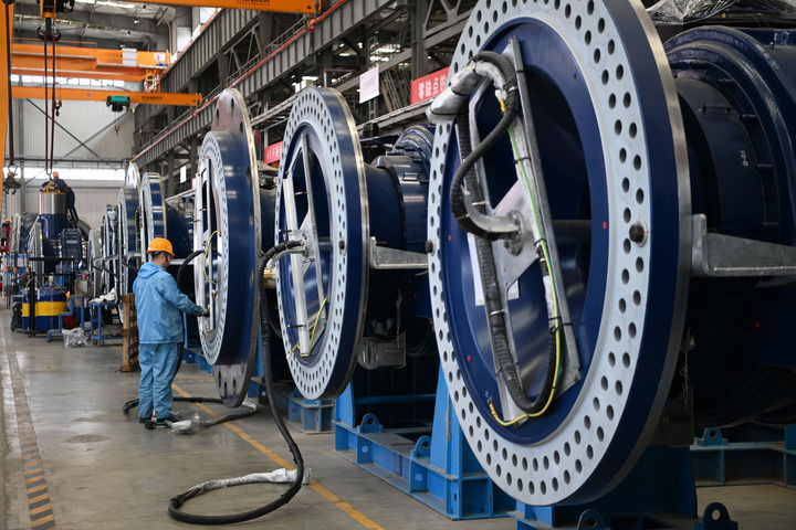 2025年3月10日,在位于酒泉经济技术开发区的甘肃明阳智慧能源有限公司总装厂,工人在车间作业。新华社记者 范培珅 摄