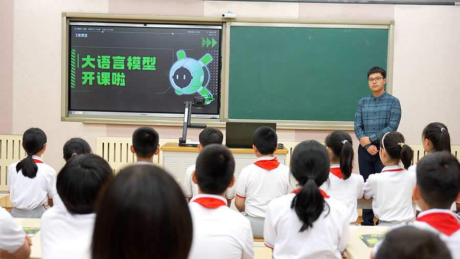 图为北京府学胡同小学师生在上AI课程。新华社记者 杨志刚