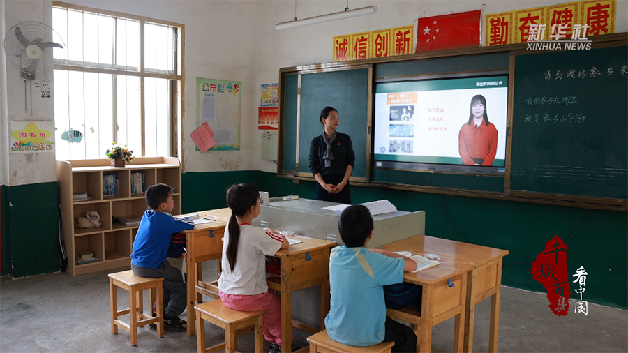 图为在湖南省祁阳市文明铺镇中心小学,师生通过远程课程学习。