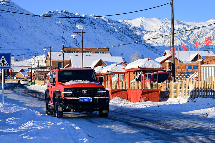 游客自驾来到新疆阿勒泰地区富蕴县可可托海镇塔拉特村。新华社记者 丁磊 摄